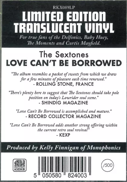 The Sextones: Love Can't Be Borrowed CLR | LTD Die Version auf Vinyl LP in farbiger limitierte Auflage. Diese besondere Auflage wurde veröffentlicht in Italien im Verlag Record Kicks am 31. Mai 2024. Album Genres übergreifend Funk / Soul und Soul. Clear Vinyl.