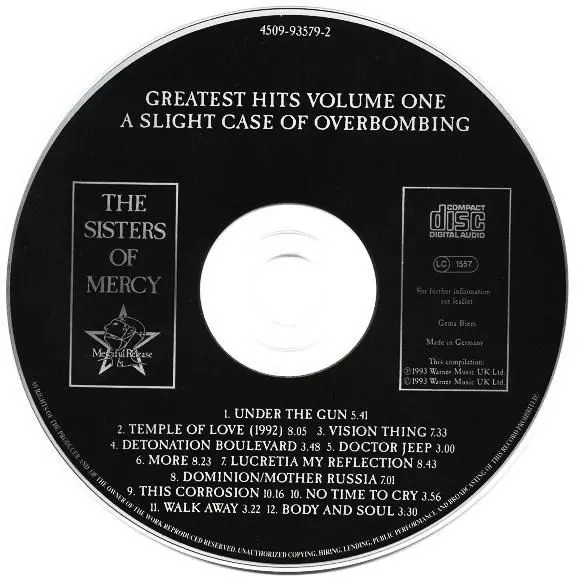 The Sisters of Mercy released the Greatest Hits Volume One album in 1993. The album is a compilation of their greatest hits from the 1980s. The album includes the singles "Temple of Love", "Lucretia My Reflection", "This Corrosion" and "More". The Sisters of Mercy is a goth rock band from Leeds, England. The band was formed in 1980 by Andrew Eld...