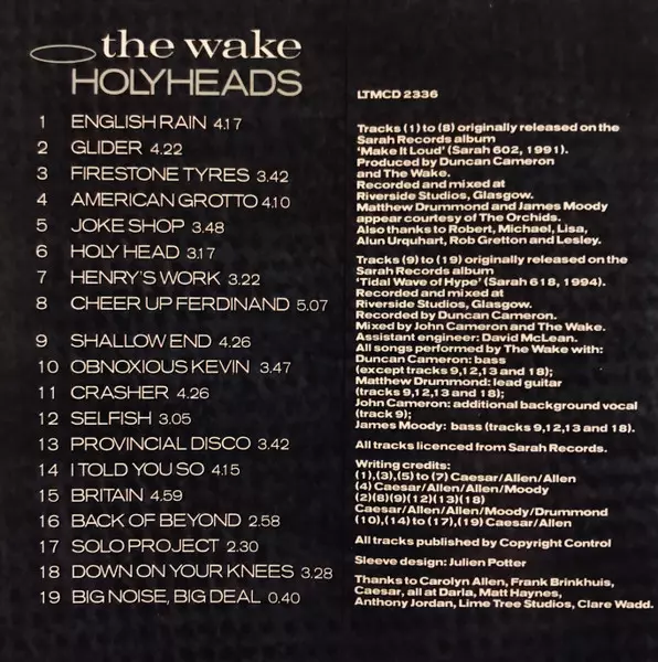The Wake: Holyheads Die Version auf CD in Standard- Auflage. Diese besondere Auflage wurde veröffentlicht in UK im Verlag LTM (4) am 1. Februar 2002. Album Genres übergreifend Rock, New Wave, Post-Punk und Indie-Rock.