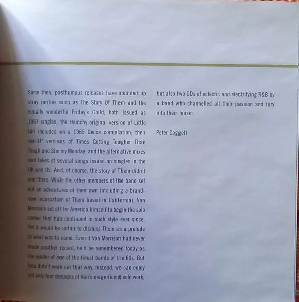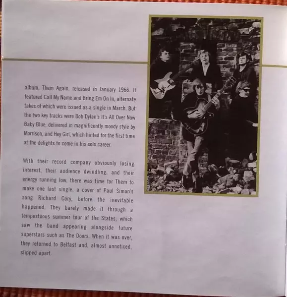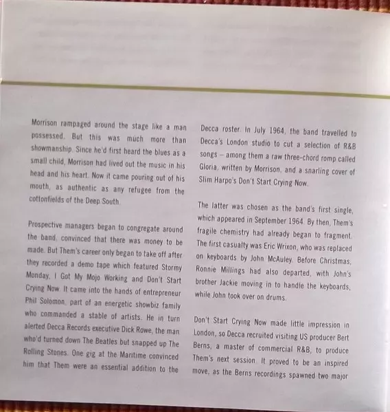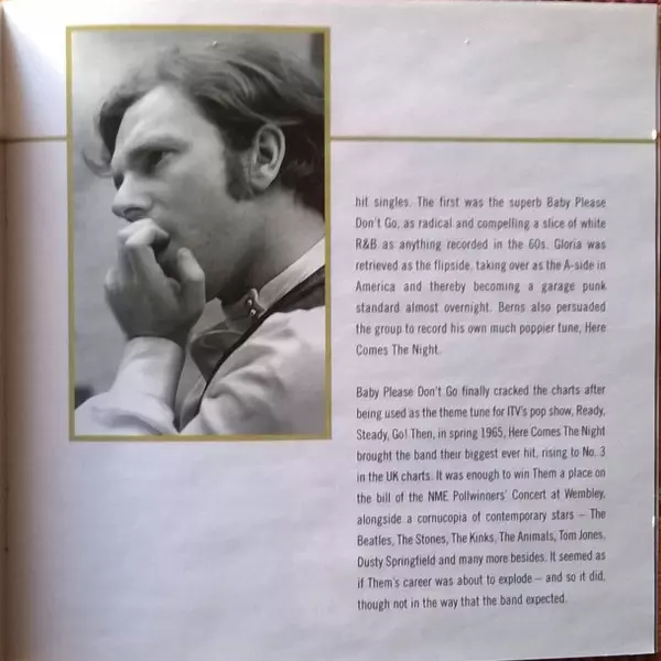 Them was a Northern Irish rock band formed in Belfast in April 1964, most prominently known for the garage rock standard "Gloria" and launching singer Van Morrison's musical career. The original five-member band consisted of Morrison , Alan Henderson , Ronnie Milling , Billy Harris...