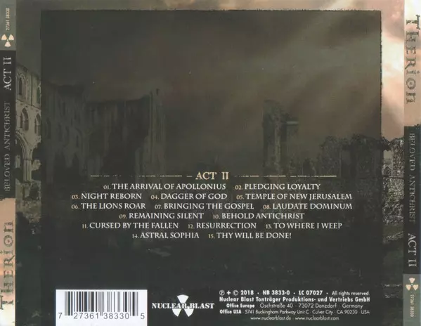 Therion: Beloved Antichrist Die Version auf 3CD in Standard- Auflage. Diese besondere Auflage wurde veröffentlicht in Europa im Verlag Nuclear Blast am 23. März 2018. Album Genres übergreifend Rock, Gothic Metal und Symphonic metal.
