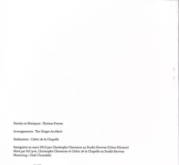 Thomas Fersen: & The Ginger Accident Die Version auf CD in Standard- Auflage. Diese besondere Auflage wurde veröffentlicht in Europa im Verlag Tôt Ou Tard am 1. Oktober 2013. Album Genres übergreifend Rock und Chanson.