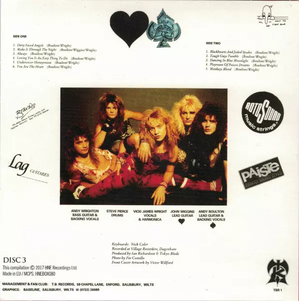 Tokyo Blade: Knights Of The Blade Die Version auf 4CD/Box Set in remastered Auflage. Diese besondere Auflage wurde veröffentlicht in Europa im Verlag Hear No Evil Recordings am 3. März 2023. Album Genres übergreifend Rock und Heavy Metal. Box Set.