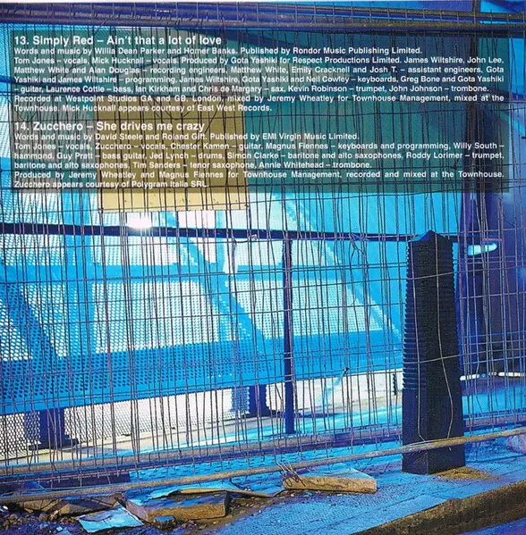 | Baritone Saxophone, Alto Saxophone Simon Clarke (2) | Bass Guitar Guy Pratt | Drums Ged Lynch | Electric Organ [Hammond] William South | Guitar Chester Kamen | Keyboards, Programmed By Magnus Fiennes | Producer Jeremy Wheatley, Magnus Fiennes | Tenor Saxophone Tim Sanders | Trombone Annie Whitehead | Trumpet Roddy Lorimer | Trumpet, Baritone Saxophone, Alto Saxophone Roddy Lorimer | Vocals Tom Jones, Zucchero | Words By, Music By David Steele, Roland Gift | |||