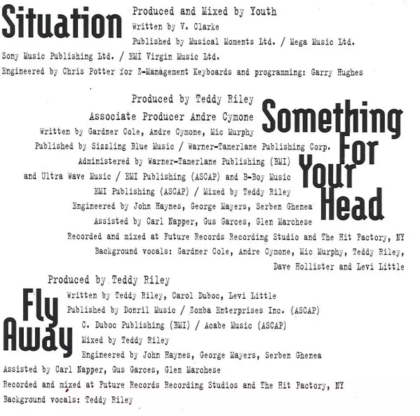 Backing Band Mic Murphy | Backing Vocals André Cymone, Dave Hollister, Gardner Cole, Levi Little, Teddy Riley | Engineer George Mayers, John Hanes, Serban Ghenea | Engineer [Assistant] Carl Napper, Glen Marchese, Gus Garces | Producer [Associate] André Cymone | Producer, Mixed By Teddy Riley | Written-By André Cymone, Gardner Cole, Mic Murphy