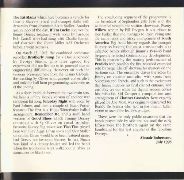 | Künstler | Tommy Dorsey And His Orchestra | Jimmy Dorsey And His Orchestra |