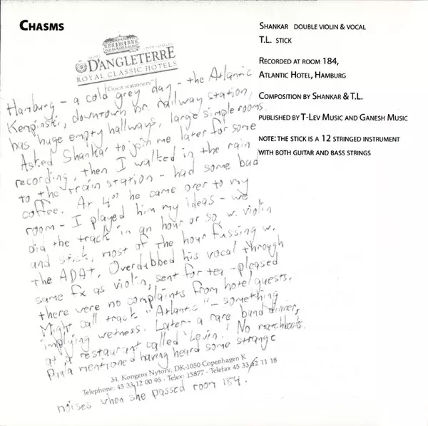 Chapman Stick [Stick] Tony Levin | Composed By Shankar, Tony Levin | Electric Violin [Double Violin], Vocals Shankar