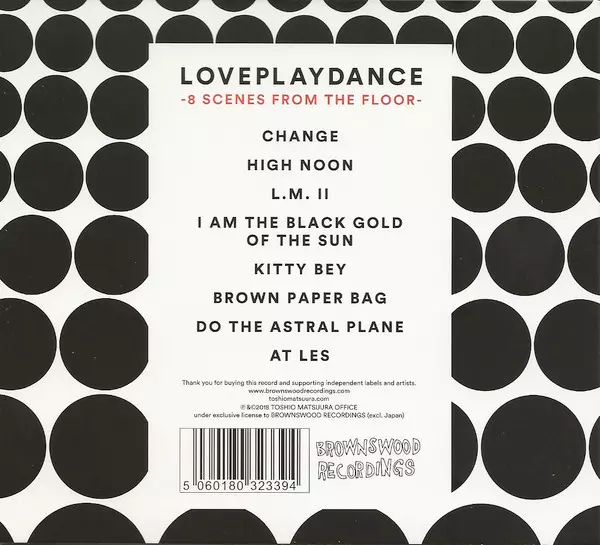 Toshio Matsuura Group: Loveplaydance (8 Scenes From The Floor) Die Version auf CD in Standard- Auflage. Diese besondere Auflage wurde veröffentlicht in UK im Verlag Brownswood Recordings am 25. April 2018. Album Genres übergreifend Jazz, Funk / Soul, Lateinamerikanische Musik und Contemporary Jazz.