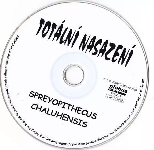Totální Nasazení: Spreyopithecus Chaluhensis Die Version auf CD in Standard- Auflage. Diese besondere Auflage wurde veröffentlicht in Tschechische Republik im Verlag Globus Music am 8. November 2019. Album Genres übergreifend Rock, Punk, Pop Rock und Tschechoslowakische Klassiker.
