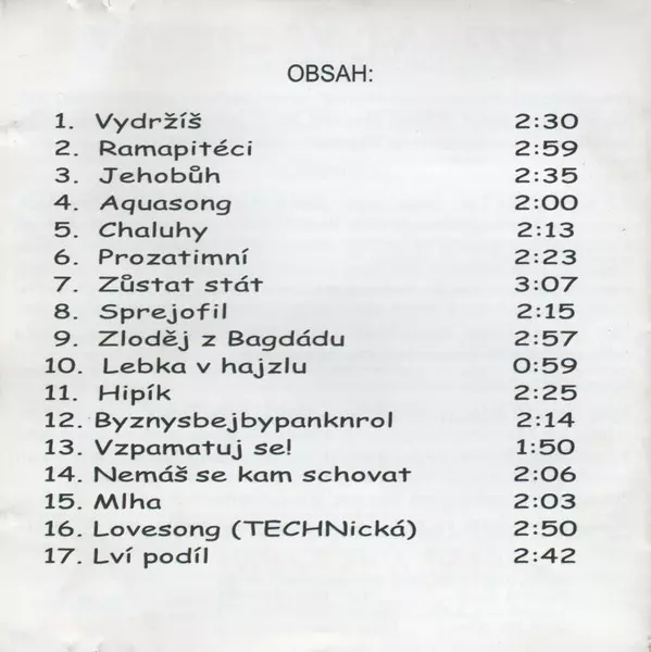 Lyrics By [Odborné Texty], Other [Duchovní Podpora Automatického Kolegy Casio] Pavel Pešata | Other [Samohrajka], Other [Programování Automatického Pípy] Svatopluk Šváb | Vocals [Guest] Veronika Chládková