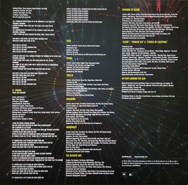 Toto: 40 Trips Around The Sun Die Version auf Vinyl 2LP in remastered Auflage. Diese besondere Auflage wurde veröffentlicht in Europa im Verlag Columbia In Zusammenarbeit mit Legacy am 9. Februar 2018.