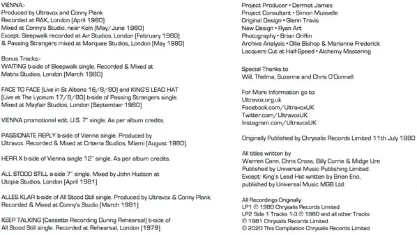 Originally released in July 1980, it was the first Ultravox album to feature Midge Ure on vocals and guitar. Produced by legendary German record producer Konrad "Conny" Plank, the album reached number 3 on the UK album chart and the top ten in Australia, New Zealand and several European countries. The album includes four UK Top 40 singles (All S...