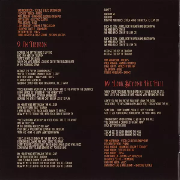 Backing Vocals Angel Grant, Dana Masters | Bass Paul Moore | Drums, Percussion Liam Bradley | Electric Guitar Dave Keary | Electric Organ [Hammond Organ], Trumpet Paul Moran (5) | Piano Fiachra Trench | Trombone Laurence Cottle | Vibraphone [Vibes] Anthony Kerr | Vocals, Alto Saxophone Van Morrison