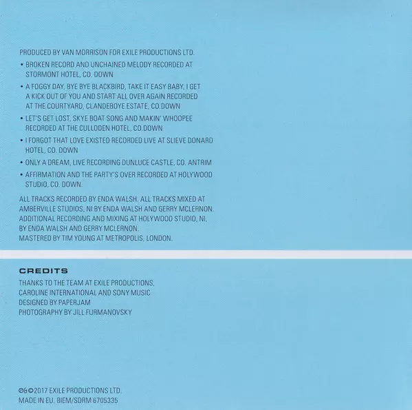 Bass Paul Moore | Drums Jeff Lardner | Electric Guitar Dave Keary | Keyboards Paul Moran (5) | Tenor Saxophone Christopher White (11) | Trombone Alistair White | Vocals Van Morrison | Written-By Van Morrison