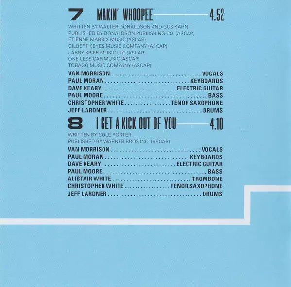 Bass Paul Moore | Drums Jeff Lardner | Electric Guitar Dave Keary | Keyboards Paul Moran (5) | Tenor Saxophone Christopher White (11) | Trombone Alistair White | Vocals Van Morrison | Written-By Cole Porter