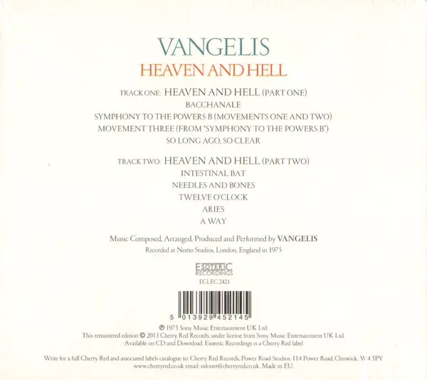 | Mehr Information | Remastered by Vangelis (Esoteric 2022) |