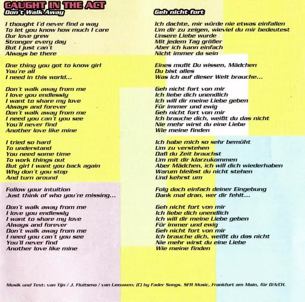 | 2-20 | Caught In The Act: Don't Walk Away (7" Version) | 3:49 min | |