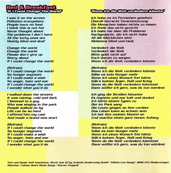| 2-17 | Bed & Breakfast: If I Could Change The World (Radio Edit) | 3:17 min | |