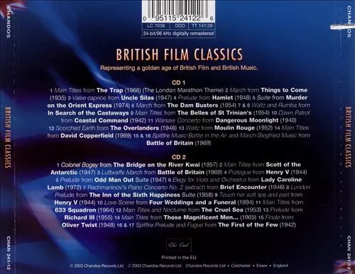 Various: British Film Classics Die Version auf 2CD in remastered Auflage. Diese besondere Auflage wurde veröffentlicht in UK im Verlag Chandos am 26. August 2003. Album Genres übergreifend Klassische Musik und Stage & Screen.