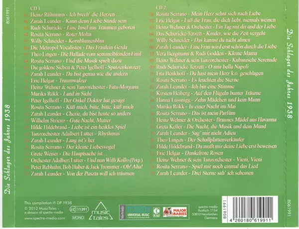 Titel | Die Schlager Des Jahres 1938 |