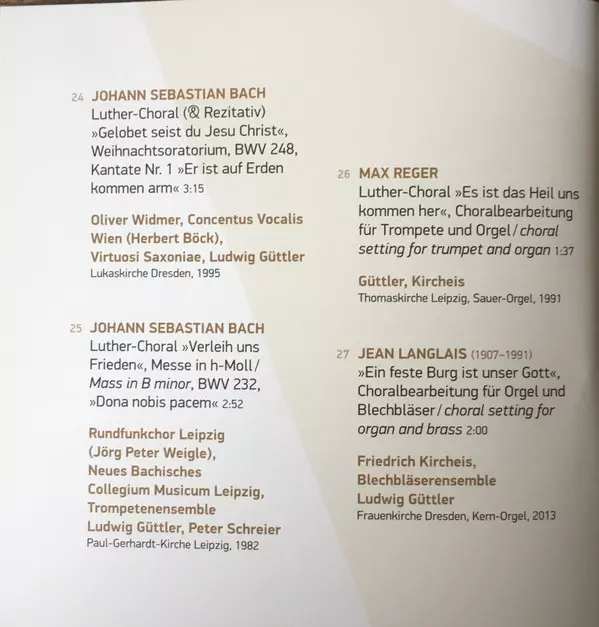 27 | Blechbläservereinigung Ludwig Güttler, Friedrich Kircheis: "Eine Feste Burg Ist Unser Gott", Choralbearbeitung Für Orgel Und Blechbläser | 2:00 min | |