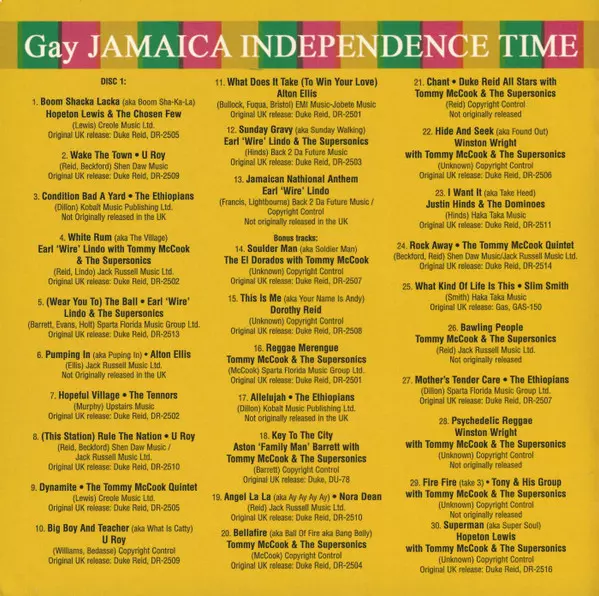 | Disc One: Gay Jamaica Independence Time | |||