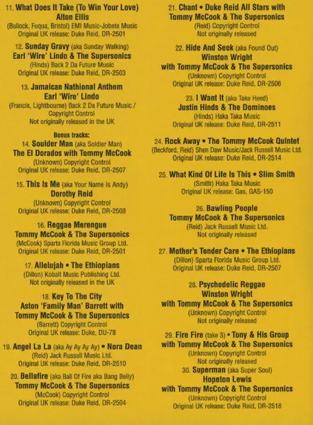 | 1-21 | Tommy McCook & The Supersonics, Duke Reid's All Stars: Chant | ||