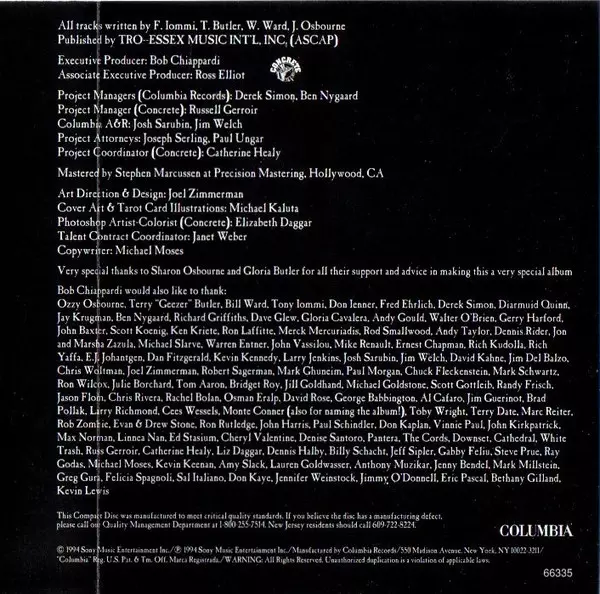 | Bass Michael McKeegan | Drums Fyfe Ewing | Guitar, Vocals Andy Cairns | Management [Ozzy Osbourne] Sharon Osbourne | Management [Therapy?] DCG Management, Gerry Harford | Producer [Ozzy Osbourne], Mixed By Terry Date | Producer [Therapy?] Chris Tsangarides | Vocals Ozzy Osbourne | |||