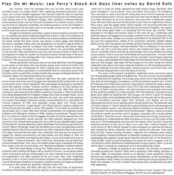 | Titel | Play On Mr. Music: Lee Perry Black Ark Days LTD |