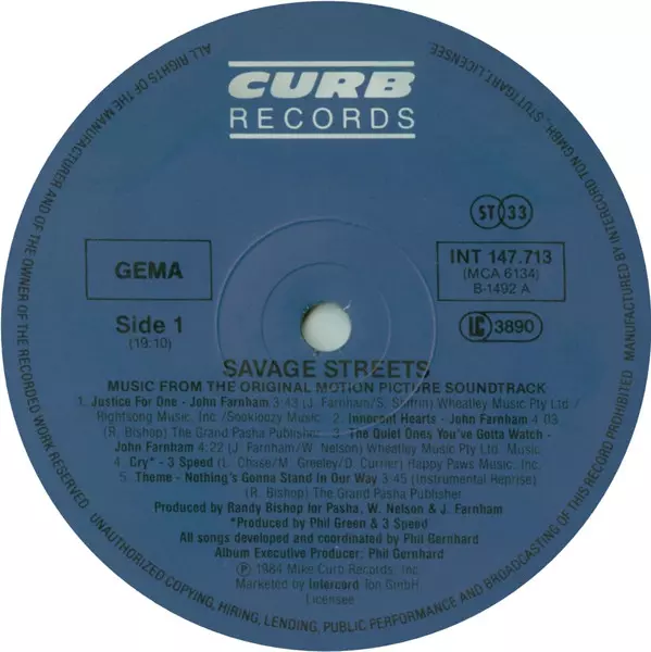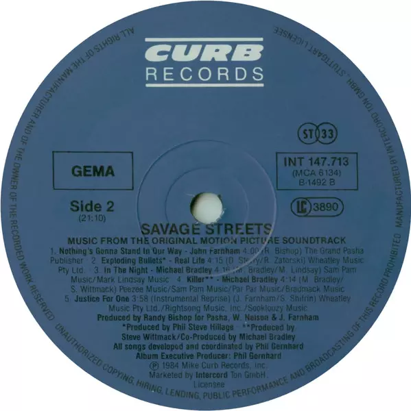 Titel | Savage Streets - Music From The Original Motion Picture Soundtrack |