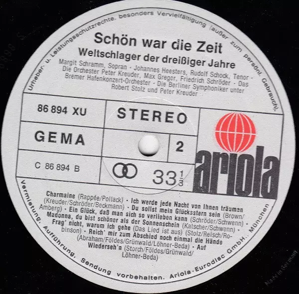 Conductor Peter Kreuder | Orchestra Berliner Symphoniker | Tenor Vocals Rudolf Schock | Written-By Friedrich Schröder, Hans Fritz Beckmann, Peter Kreuder | |||