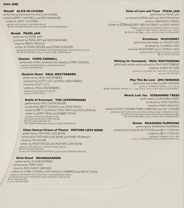 | Performer Mike McCready, Stone Gossard | Producer, Mixed By, Written-By Mike McCready | |||