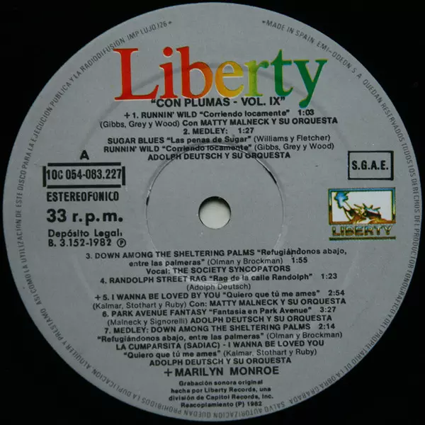 | A1 | Marilyn Monroe, Matty Malneck and his Orchestra: Runnin' Wild = Corriendo Locamente | 1:03 min | |