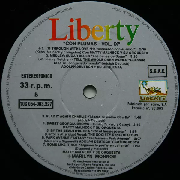 | B1 | Marilyn Monroe, Matty Malneck and his Orchestra: I'm Through With Love = He Terminado Con El Amor | 2:30 min | |