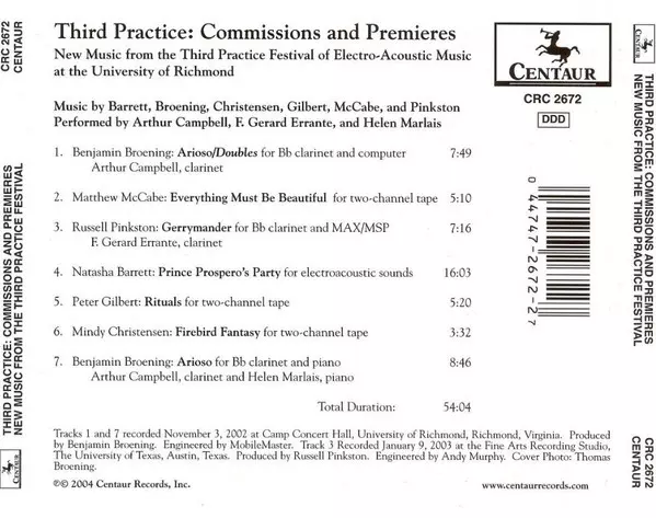 | Titel | Third Practice: Commissions And Premieres (New Music From The Third Practice Festival Of Electro-Acoustic Music At The University Of Richmond) |