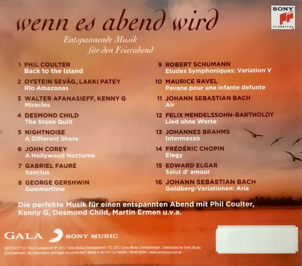 | Titel | Wenn Es Abend Wird (Entspannende Musik Für Den Feierabend) |