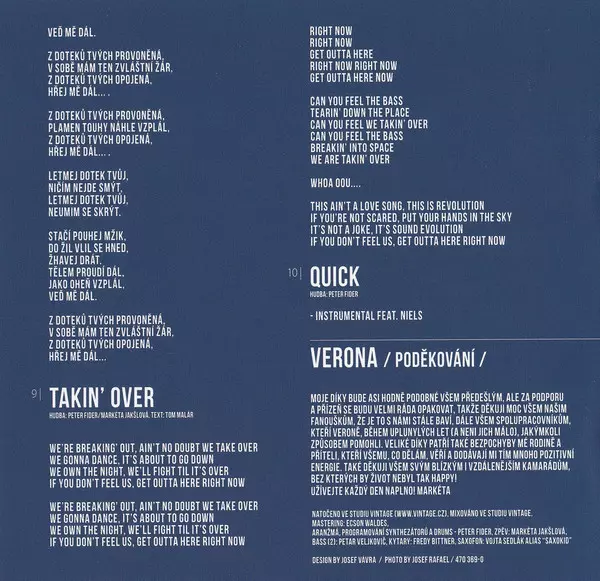 Producer, composer and keyboardist Peter Fider together with singer and songwriter Markéta Jakšlova has always managed to hit not only the atmosphere of discotheques with their catchy songs, but also a considerable number of fans through their hit parameters on the radio airwaves with their predominantly Czech lyrics. Let us at least remember probably the band's biggest hit to date, "Ztracená bloudím", which has become one of their most played songs to this day. About the new album P.Fider says:....