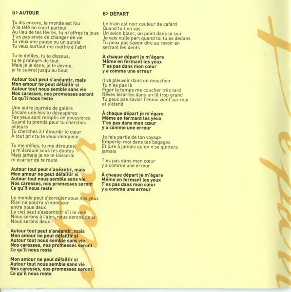 Backing Vocals Véronic Dicaire | Bass Guy Tourville | Drums, Percussion Steve Gagné | Guitar, Pedal Steel Guitar Martin Bachand | Keyboards Guy Dubuc | Lyrics By Sylvie Bernard | Music By France D'Amour | Sampler Robert Meunier (4)