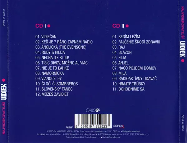 Vidiek: Najvidiekovatejší Die Version auf 2CD in remastered Auflage. Diese besondere Auflage wurde veröffentlicht in Tschechische Republik und Slowakei im Verlag Opus am 15. Oktober 2021. Album Genres übergreifend Rock, Pop, Pop Rock und Tschechoslowakische Klassiker.