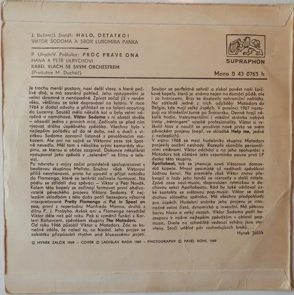 | Chorus Lubomír Pánek Singers | Chorus Master Lubomír Pánek | Lyrics By Jiří Štaidl | Music By Jiří Bažant | Vocals [Zp.] Viktor Sodoma | |||