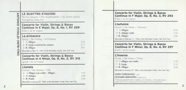 | Le Quattro Stagioni (The Four Seasons / Die Vier Jahreszeiten / Les Quatre Saisons) | ||