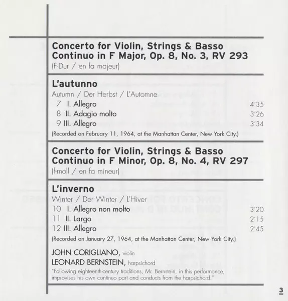 | Concerto For Violin, Strings & Basso Continuo In F Major, Op. 8, No. 3, RV 293 L'Autunno (Autumn / Der Herbst / L'Automne) | ||