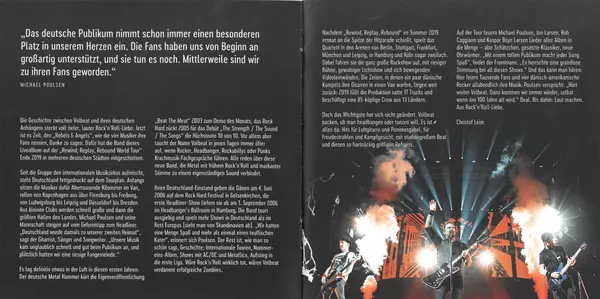 27 Volbeat Hits and Classics "Live in Germany" - complete programme "The German audience has always had a special place in our hearts. The fans have been very supportive from the beginning and still are. In the meantime, we have become their fans." (Michael Poulsen) The history of Volbeat and its German fans is full of deep and loud rock'n'roll love. Now it's time to thank the "Rebels & Angels", as the four musicians call their fans. To this end, the band recorded this live album at the end of 2019 as part of the "Rewind, Replay, Rebound World Tour" in several German cities. Ever since the band stirred up an international music circus, Germany has been printed in bold on the tour schedule. At the start, the musicians will travel thousands of kilometers in a van, rolling from Copenhagen to Flensburg and Freiburg, from Ludwigsburg to Leipzig and from Düsseldorf to Dresden. Small clubs soon become big clubs and then the biggest halls in the country. Michael Poulsen and his team go from insider tip to major star. "Germany then became our second home," says the guitarist, singer and composer. "Our music caught on incredibly quickly and well with the public, and suddenly we had a huge fan base." The Danes will make their German debut on June 4, 2006 at the Rock Hard festival in Gelsenkirchen and will perform at Headbanger's Ballroom in Hamburg on September 1, 2006. "We've had a lot of fun and more than once a devilish hangover," Poulsen recalls. The rest, as they say, is history: international tours, chart-toppers, gigs with AC/DC and Metallica, promotion to the big leagues. If rock'n'roll were really dead, Volbeat would be damn successful zombies. After "Rewind, Replay, Rebound" shoots to the top of the charts again in summer 2019, the quartet will play arenas in Berlin, Stuttgart, Frankfurt, Munich and Leipzig, and even twice in Hamburg and Cologne. They put on a big rock show with a huge stage, a massive light show and moving video screens. The days when a couple of Danish mates loaded guitars into a van are long gone: in 2019, the production will fill a whopping 17 trucks and employ an 85-strong team from 13 countries. On the tour, Michael Poulsen, Jon Larsen, Rob Caggiano and Kaspar Boye Larsen fire songs from all albums - old favourites, classics and new - into the crowd. "With a great crowd, every song is fun," the frontman thinks. "There's been an amazing atmosphere at all these shows." And you can hear it: Thousands of fans and four Danish-American rockers are there every night to celebrate their music. Poulsen promises, "Keep listening to Volbeat. Then we'll keep coming back, even when Jon is 100 years old." The deal. Until then, do it loud. For the love of rock 'n' roll.