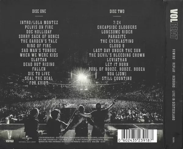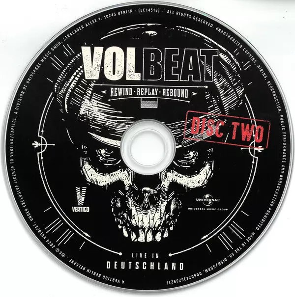 Volbeat: Rewind, Replay, Rebound: Live In Deutschland Die Version auf 2CD in Standard- Auflage. Diese besondere Auflage wurde veröffentlicht in Deutschland im Verlag Vertigo In Zusammenarbeit mit Universal Music Group am 11. Dezember 2020.