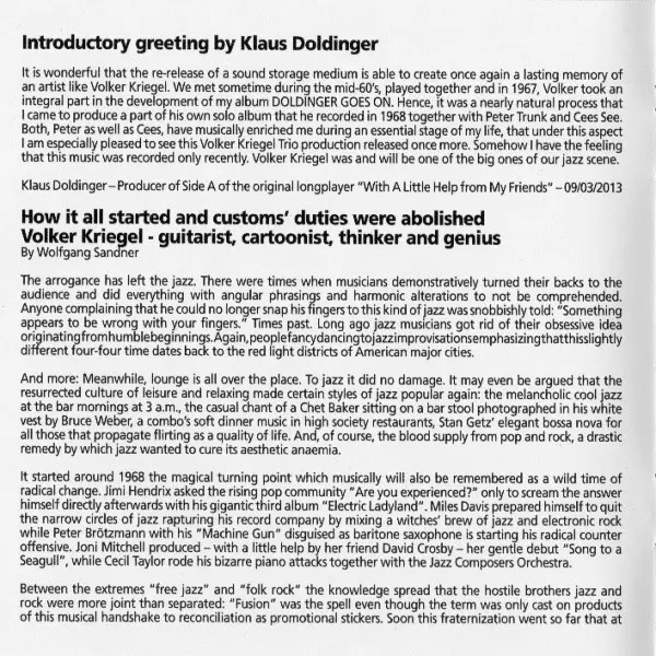 | Bass Günter Hermkes | Drums Ralf Hübner | Guitar Volker Kriegel | Tenor Saxophone Gustl Mayr | Written-By Volker Kriegel | |||