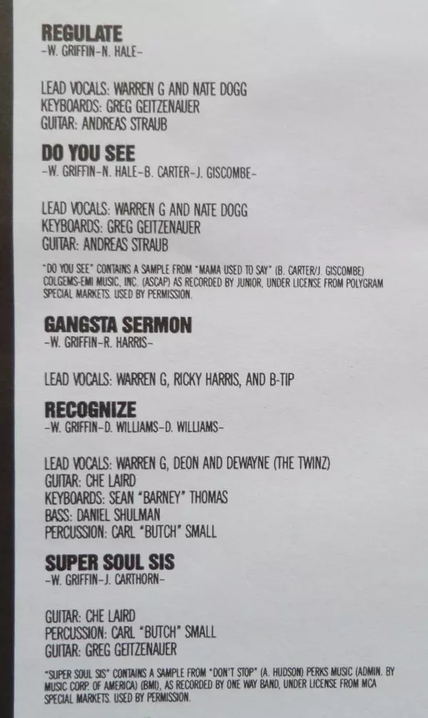 Guitar Andreas Straub | Keyboards Greg Geitzenauer | Lead Vocals Nate Dogg, Warren G | Recorded By [Sample From "Mama Used To Say" Recorded By] Junior (2) | Written-By Bob Carter, Nathaniel Hale, Norman Giscombe Jr., Warren Griffin III | Written-By [Sample From "Mama Used To Say" Written By] Bob Carter, Norman Giscombe Jr.