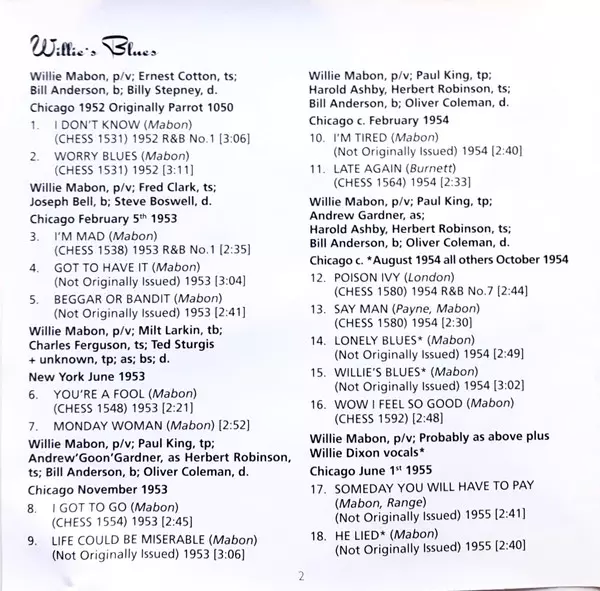 | Titel | Willie's Blues: The Greatest Hits (1952-1957) |