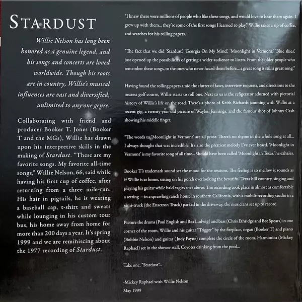 Willie Nelson (voc, g); Booker T. Jones (org, p); Jody Payne (g); Bobbie Nelson (p); Bee Spears, Chris Ethridge (b); Mickey Raphael (hca); Paul English, Rex Ludwick (dr) Willie Nelson has long been revered as a true legend, his songs and concerts popular around the world. Although his roots are in country music, his musical influences are as wid...