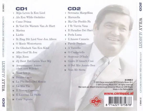 Willy Alberti: Onvergetelijke Herinneringen Die Version auf 2CD in Standard- Auflage. Diese besondere Auflage wurde veröffentlicht in Niederlande im Verlag Cnr am 30. April 2015. Album Genres übergreifend Pop und Vokalmusik.