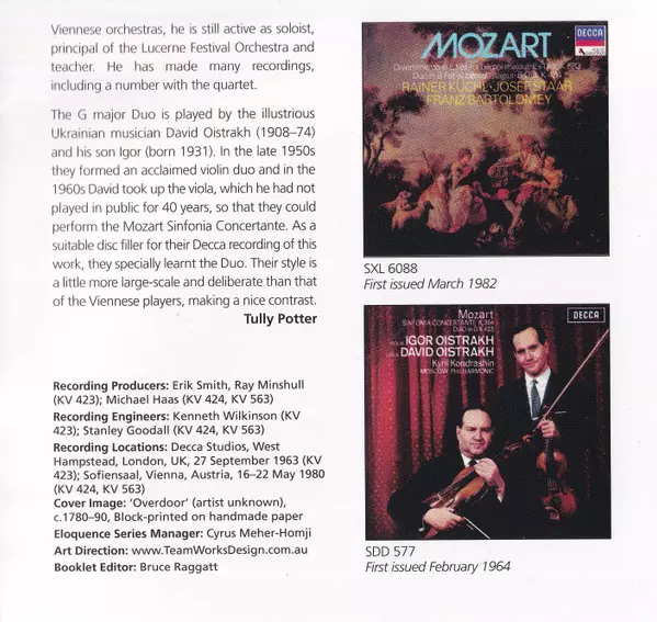 | Künstler | Wolfgang Amadeus Mozart | David Oistrach | Igor Oistrach | Rainer Küchl | Franz Bartolomey | Josef Staar |